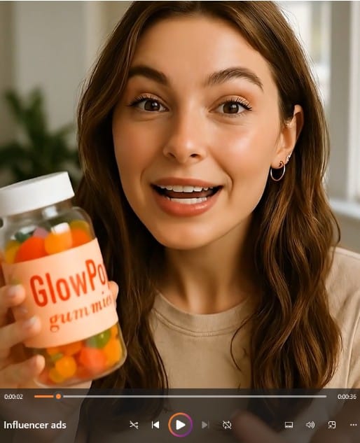 Influencer UGC-style videos that would normally cost eCommerce brands $500+ to hire a pretty face to hold their product and talk about it on camera (oh plus a 1-week waiting time)